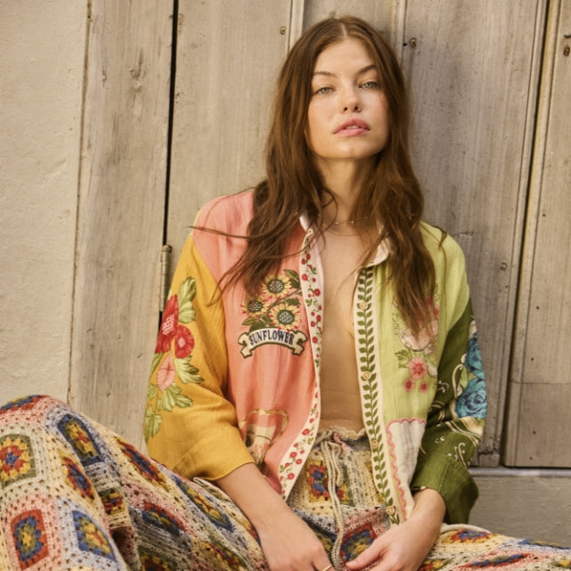 This collection is an ode to the origins of Agua Bendita, where molas and patchwork were the protagonists, creating a garden of nostalgia from small scraps and seed packets.
